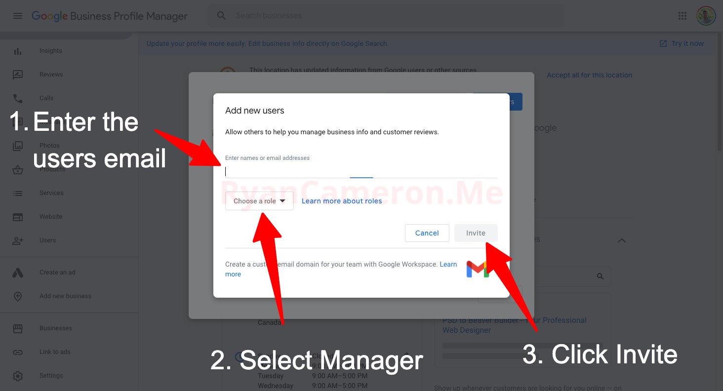 Once that is complete the user should have gotten an email to join your Google My Business account.
